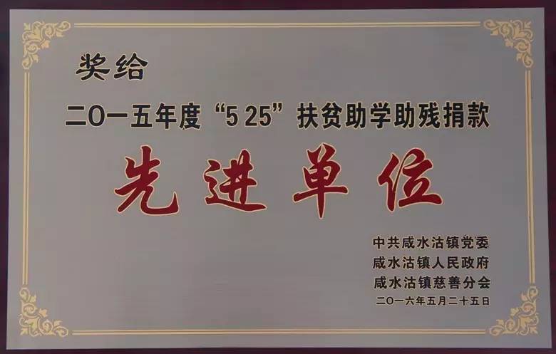 2015年,咸水沽镇党委、政府认真贯彻习近平总书记提出的创新我国慈善事业制度的重要讲话精神,努力实践科学发展观,在全镇继续开展“5.25”扶贫助学助残献爱心活动。各级党组织积极响应号召,强化组织,周密部署,凝聚社会各界慈善力量,广泛募集慈善资金。为弘扬正气,表彰先进,进一步提高全民慈善理念,营造全民慈善的良好氛围,镇党委、政府、慈善分会决定对2015年扶贫助学助残活动优秀组织单位、捐资先进单位和先进个人予以表彰。希望受表彰的单位和个人能够再接再厉,续写精神文明新篇章。