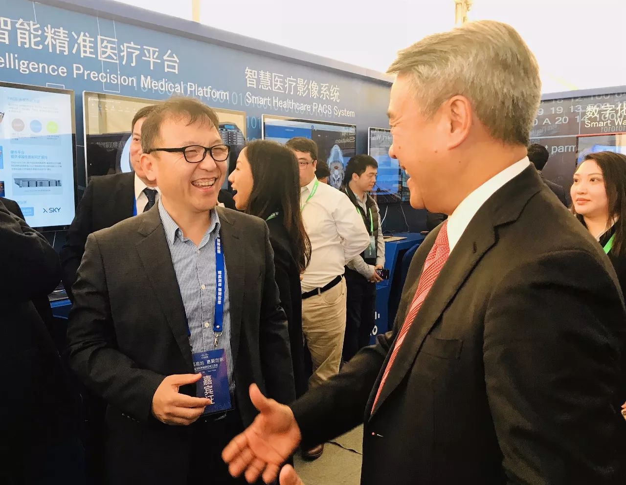 活动中,诸多领导嘉宾在jiuyou九游展区驻足,聆听刘柏呈董事长讲解jiuyou九游针对智慧城市的多方位服务领域及其竞争力,并与各位嘉宾交流了jiuyou九游综合能源解决方案之于智慧城市管理的优势。