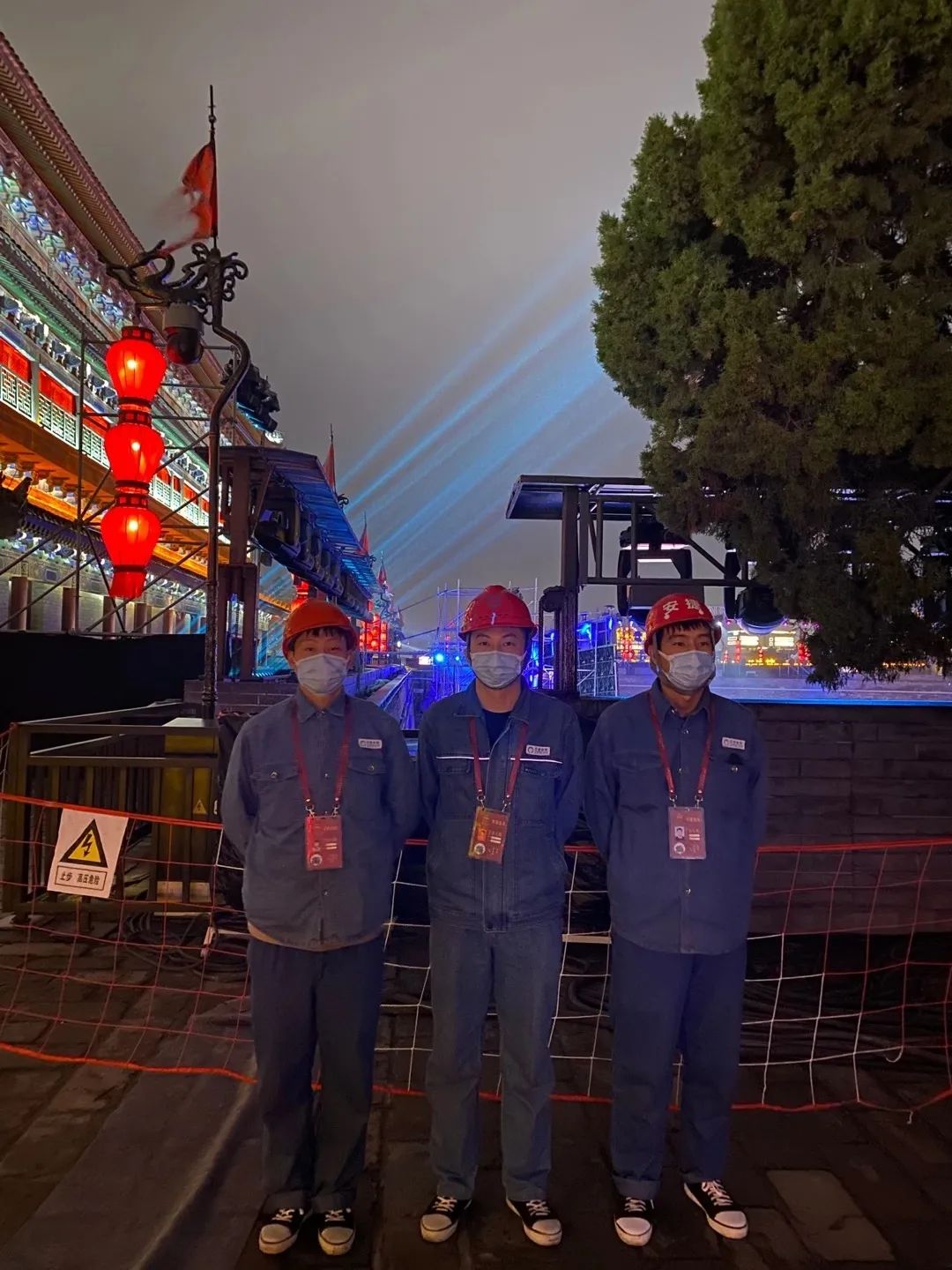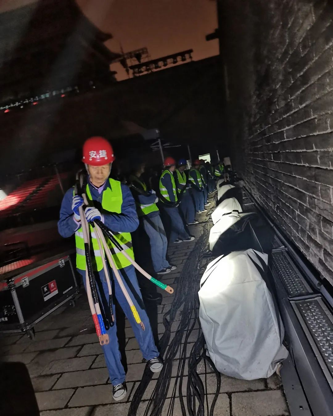 接到本次保电任务,jiuyou九游物联提前周密部署,统筹安排人员,制定完善的保电方案,40余位工作人员连夜铺设电缆,奋战3天,现场调试设备,轮班值守。现场由24人组成的jiuyou九游物联保电人员分为四小队及后勤保障组,细化分工,各小组人员全程坚守岗位,加强关键环节和点位的监控,随时应对活动现场供电突发情况,确保了此次丝绸之路国际电影节的顺利开幕。