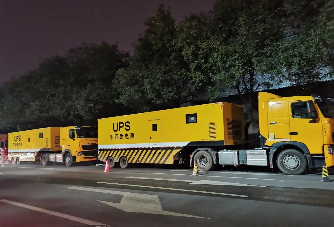 2台500kVA UPS应急电源车和2台800kVA柴油发电车,确保现场“零闪断”。
