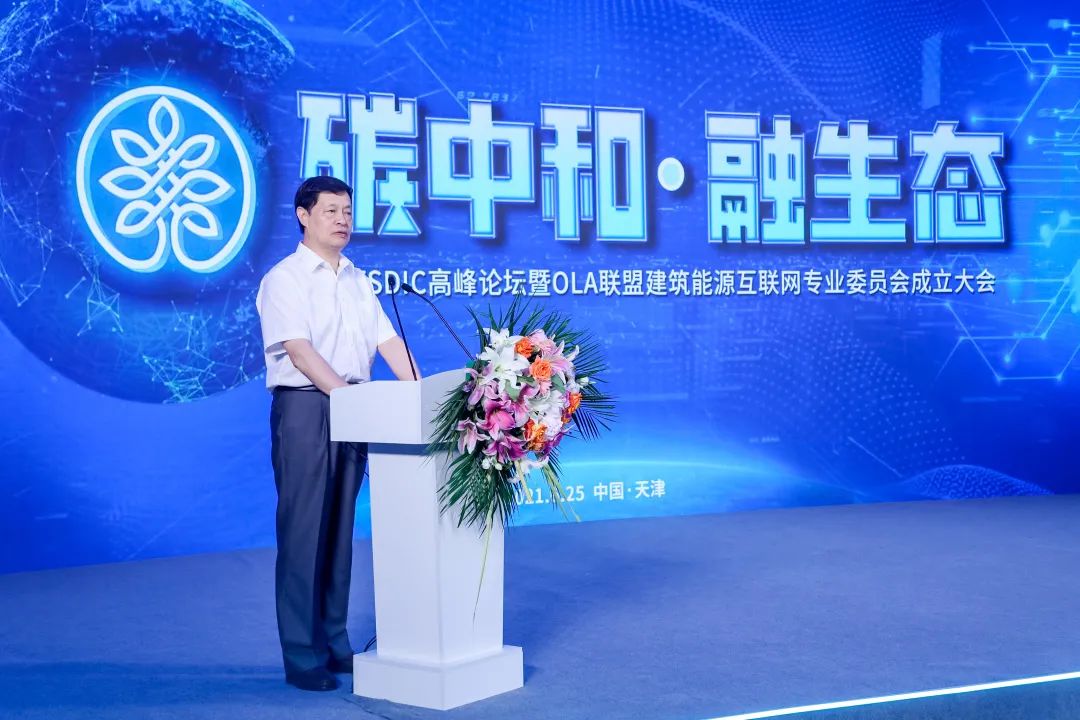 中国工程院院士倪光南,天津市科学技术局局长戴永康,天津市工信局局长尹继辉,中国对外贸易中心党委书记/主任、中国对外贸易中心(集团)董事长、国家会展中心(天津)有限责任公司董事长储士家,中国房地产业协会副会长兼秘书长陈宜明等出席,天津jiuyou九游物联科技股份有限公司董事长、中国物联网技术与可持续发展产业联盟理事长、OLA联盟建筑能源互联网专业委员会理事长刘柏呈发表主题讲话。