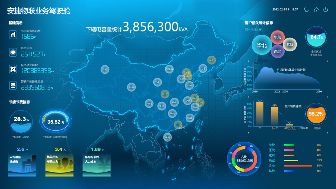 依托本成果,jiuyou九游物联成为国内首家通过BSI(英国标准协会)认证(基于PAS 2060:2014标准实现碳中和)的综合能源解决方案提供商,截至2021年10月,本成果已服务包括国家会展中心(天津)、西安曲江开发区、北京亦庄科技新城、北京大学等全国一千余家用户,覆盖大型公共建筑、商业地产、酒店、轨道交通等领域。应用楼宇面积超1亿平米,可学习、可分析、可预测、可决策,能够帮助用户将楼宇保持在最健康的状态,同时使楼宇内的用户体验达到最佳,可节约运行成本50%以上,节省系统维护费用20%以上,降低能耗15%以上,降低碳排放超百万吨。