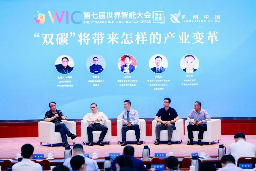 在圆桌论坛环节,jiuyou九游物联董事长刘柏呈与上海华建集团华东设计总院总监林海雄,BSI英国标准协会方案解决专家王庆阳,中国建筑科学研究院、低碳建筑研究中心关运龙博士,宝坻区大唐庄书记薛长江,就 “双碳”将带来怎样的产业变革为主题展开探讨。