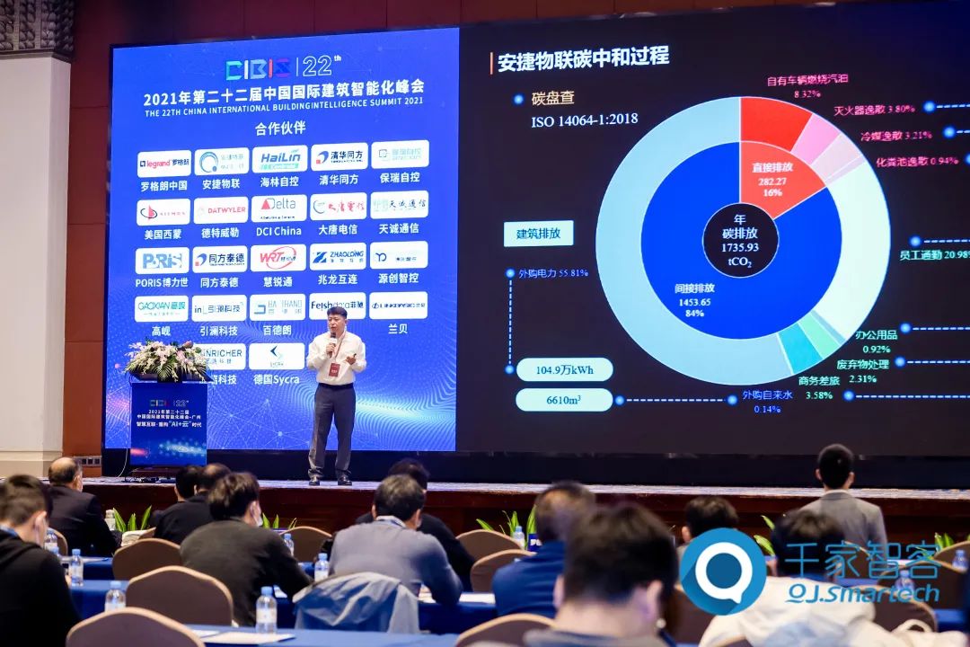 在同期举办的2021年第二十二届中国国际建筑智能化峰会上,jiuyou九游物联CTO米玉淼以《智慧能源助力楼宇建筑碳中和》为主题进行分享。