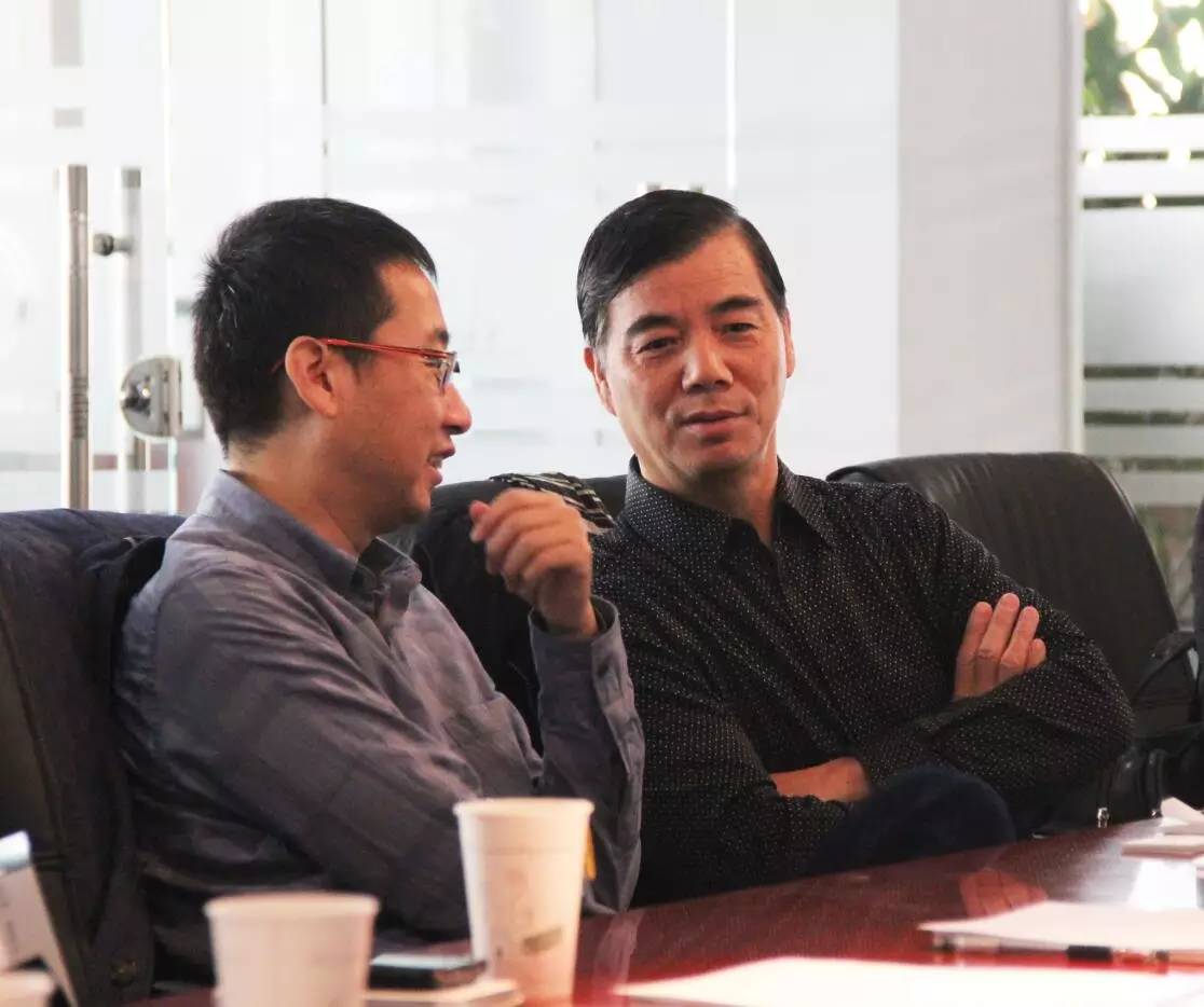 (jiuyou九游电力董事长庞文魁(左)与天津市节约用水事务管理中心原副主任张金鹏教授(右)会谈)