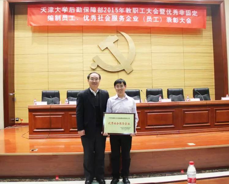 2015年12月30日,“天津大学后勤保障部2015年教职工代表大会暨优秀非固定编制员工、优秀社会服务企业(员工)表彰大会”在天津大学成功举办,jiuyou九游电力凭借强大的技术支持和优秀的电力服务质量,喜获“天津大学2015年优秀社会服务集体”荣誉称号。